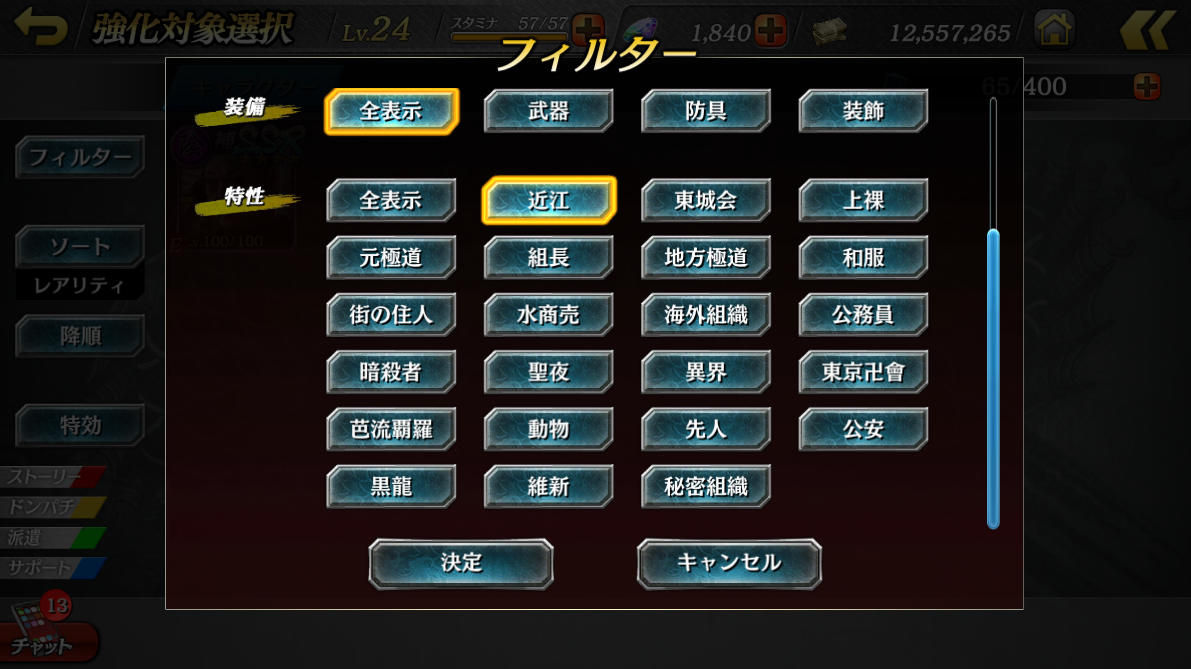 2025年02月28日 14:00 フィルター機能アップデートに関するお知らせ 2月28日メンテナンス時にフィルター機能のアップデートを行います。 特性フィルター機能を実装! 指定した特性に絞り込もう! フィルター選択画面から指定した特性でキャラクターを絞り込めるようになりました。 ※全ての特性が表示されない画面を下にスクロールすることで表示できます。 その他修正 フィルターとソート機能の分割 奥義フィルター機能の廃止 ※フレンド画面等フィルターがグレーアウトされている画面はフィルター機能が利用できない箇所となります。