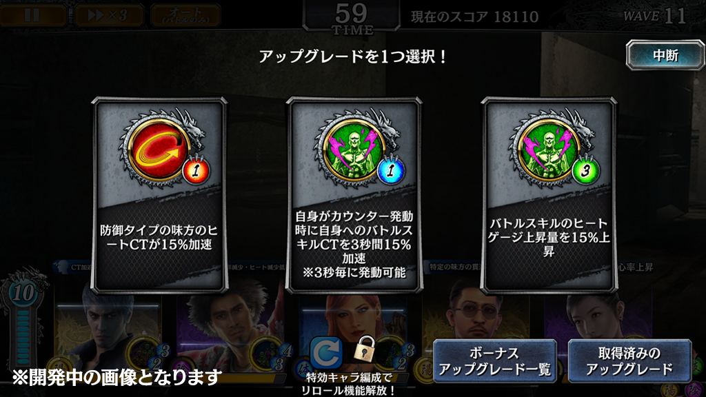 アップグレード選択では特効キャラ編成でリロール(再抽選)可能!